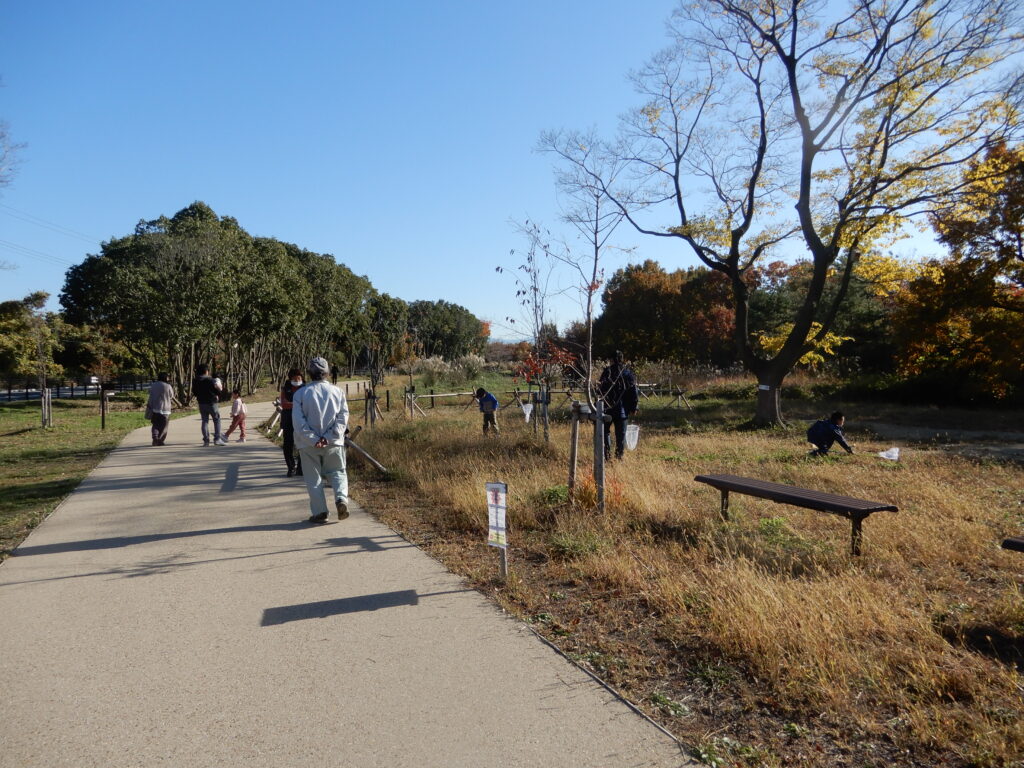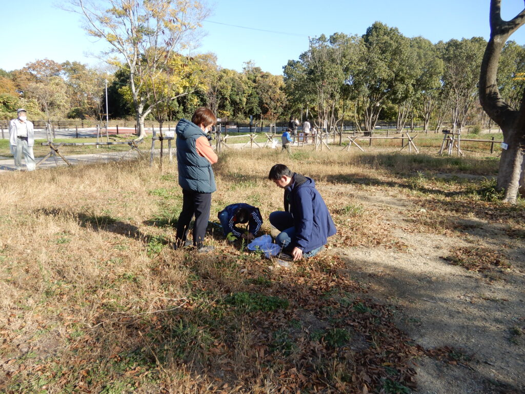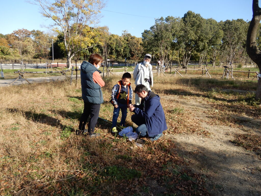 園内の色づいた紅葉スポットを散策してドングリ探しや紅葉した落ち葉拾い、虫捕り、鑑賞、写真撮影等を行いました。当日は8名の参加者にお越しいただき、スマホで撮った「思い出の一枚」をインスタントカメラでその場現像してプレゼントしました。