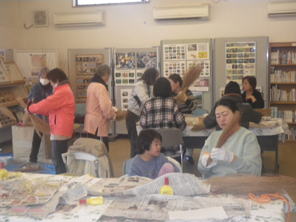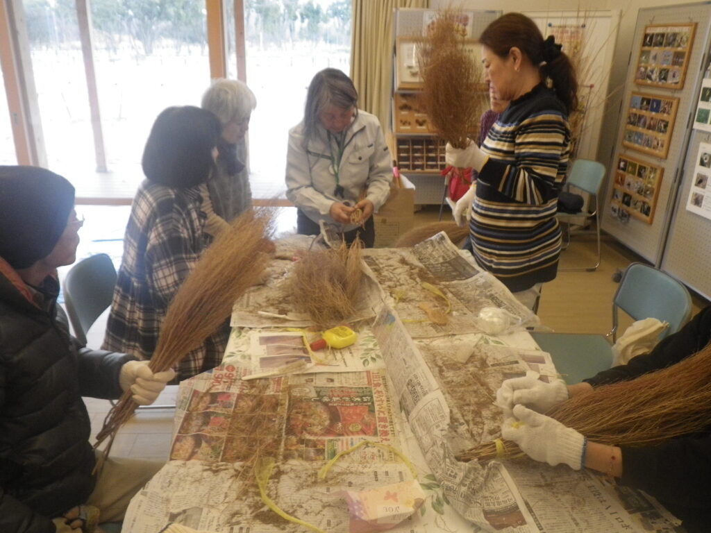 名は体を表す、を地で行きそのまま「ホウキグサ」の別名を持つ園芸植物・コキア。公園内のプランターで育てられ収穫乾燥されたコキアの穂を束ねて、竹箒よりも粘りとコシが強いともいわれる、コキアほうきを手作りしました。お陰で当日は満員の大盛況となりました、皆様ありがとうございました。