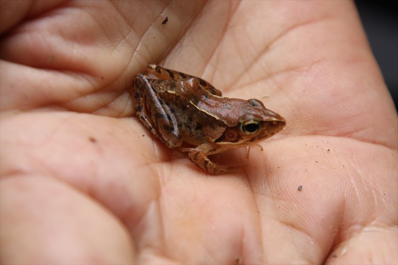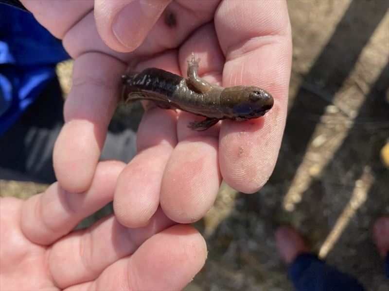 この公園の大きな見どころの一つが、ヤマトサンショウウオという珍しい両生類です。大阪府では絶滅の危機にある生き物として最も高いランク(絶滅危惧I類)に指定されており、春になると湿地で卵を産む姿を稀に観察できることがあります。サンショウウオは、枯れない湿地と豊かな森林が近くに隣接していなければ存続できない生き物なので、この公園の環境の良さを示す象徴的な存在です。