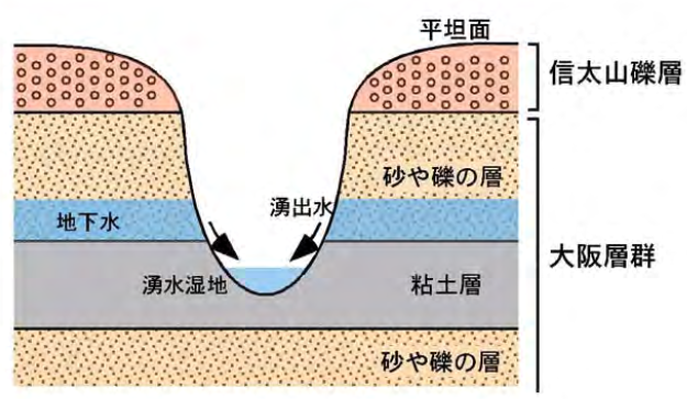 この公園がこれほど豊かな自然を保っているのには、実は特別な理由があります。かつてこの土地は軍や自衛隊の訓練場として使われていたため、開発から守られてきました。もっと大昔には、水底に沈んでいたため粘土が堆積し、湧水が溜まりやすい粘土層と、まるで河砂のような礫石とが混じった特有の地質が自然につくられました。人の手が入りすぎず、かといって完全に放置されることもなかったことで、独特の自然環境が育まれたのです。今では市民の願いによって自然公園として生まれ変わり、多くの人が訪れて楽しめる場所になりました。
